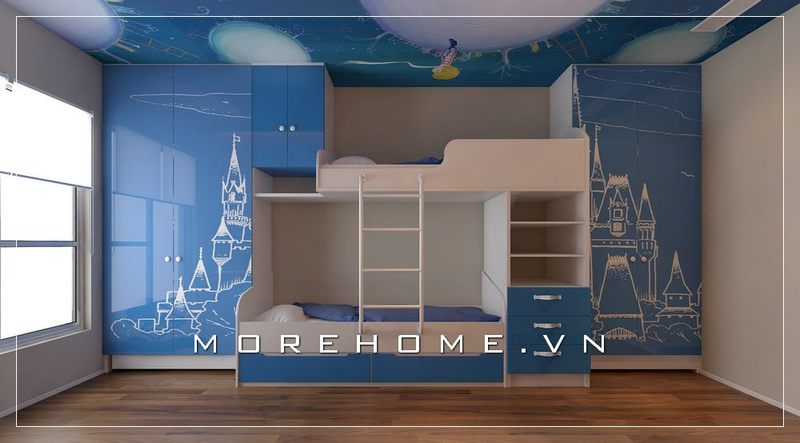 Thiết kế tủ quần áo cánh mở kết hợp giường tầng độc đáo, ấn tượng cho phòng ngủ của bé trai hiện đại