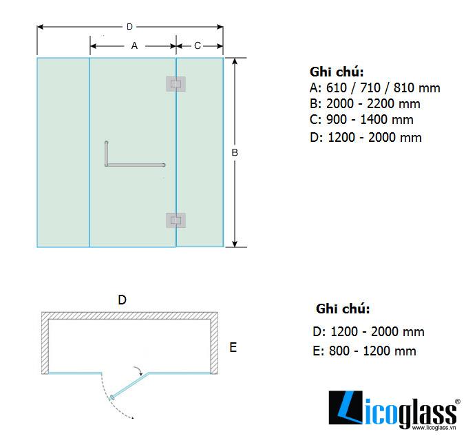 Cấu tạo vách tắm kính cửa mở quay 180 độ: